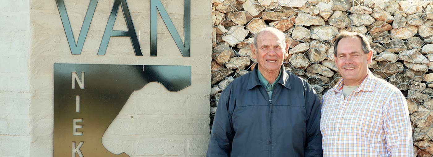 Pieter van Niekerk is ‘n sakeman in Kimberley en op ‘n deeltydse basis sedert 1990 by die boerdery betrokke. Sedert 2000 brei hy sy betrokkenheid uit en in 2009 besluit hy en pa Gert om die Bonsmara kudde na die volgende vlak, nl. ‘n stoetkudde te neem. Die nodige navorsing en opleiding volg om ons op die pad te plaas. Frikkie Kruger , Kit Thompson en Ray Butler se advies en insette help ons om aan die gang te kom en ons raak al hoe meer opgewonde oor die uitdagings en moontlikhede. Soos die tyd aanstap steek ons kers op by vele tellers en is bereid om te leer by kundiges. In 2010 sluit ons by die NoordKaap Bonsmara Groep aan en kry die geleentheid om by gevestigde tellers soos Ben Liebenberg, Neels Booyens, Terence I’ons, Colleen Jacobs en Hennie Retief te leer. Dit is ook goed om ‘n sirkel van kundigheid om jou te he.
